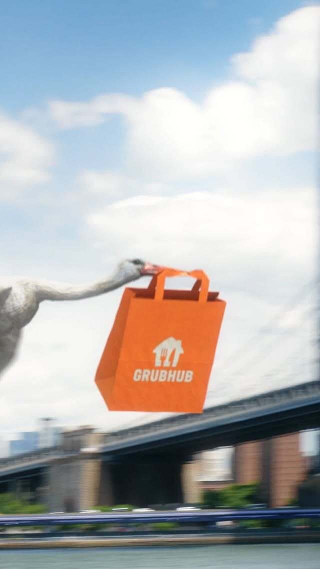 The campaign started with a teaser video on social featuring storks flying around New York City with Grubhub bags in tow and the caption, āItās not everyday you see storks storm the skies⦠A special delivery is on its way.ā To create further intrigue, they used AI to create images that superimposed strokes in front of office buildings around the city.