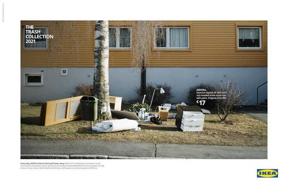 IKEA teamed up with TRY, an Oslo-based creative agency, on The Trash Collection campaign. The idea was to rescue furniture people had already thrown away and give it new life.
