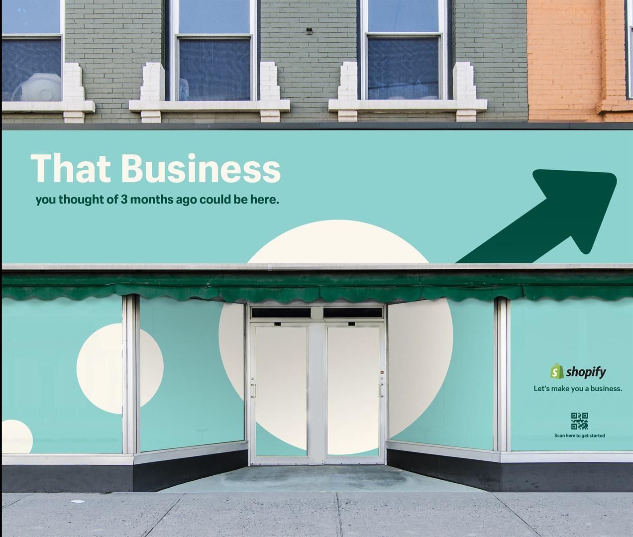 The OOH execution called “That Storefront” tapped into vacant retail storefronts and promoted the businesses that hadn’t been started (with Shopify) yet. The windows had ads saying “That business you think could be huge, could be here” and “That business you’re not sure how to start, could be here.”