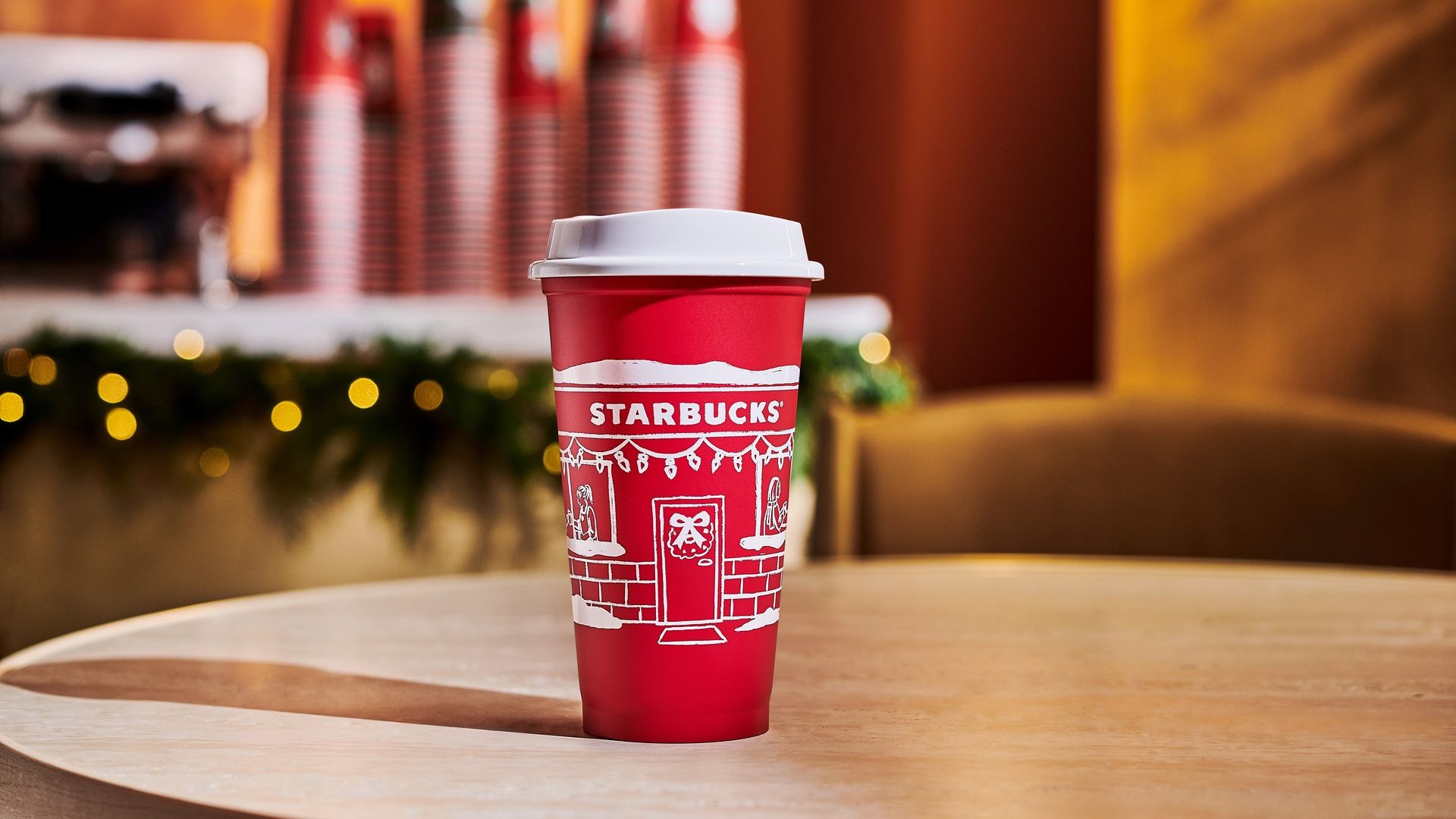 This year’s cup design is a hand-drawn sketch by Starbucks designer Yvonne Chan, who said it’s, “inspired by the little moment of magic you feel when you step into a Starbucks from the cold outside.” The design choice ladders up to the broader Back to Starbucks strategy that emphasizes simplicity over heavy branding.