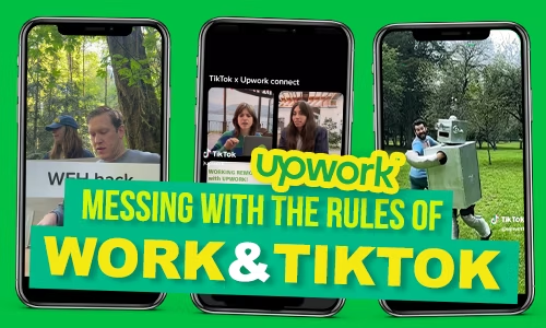 Upwork partnered with Swift Agency to execute this nuanced idea. Their research revealed that ānew ways of workingā was a popular conversation topic on TikTokābut all of it, for the most part, looked the same. The subgenre of #WorkTok had a pretty standard formulaāitās a person filming from their desk offering āwork hacksā and using green screens to show common enterprise software and title overlays to tell the story.
