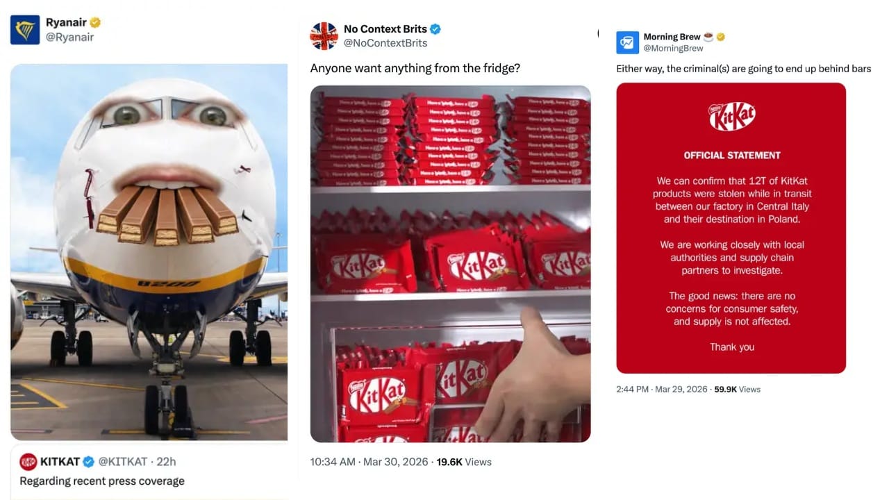KitKat's wit worked well here because the situation was low-stakes. No one was hurt in the heist, supply wasn't affected, and the stolen product was chocolate. The playful tone fit the moment. But that same response would have landed very differently if there had been safety concerns, major company disruptions, or if the products involved were essential and/or life-saving.Â